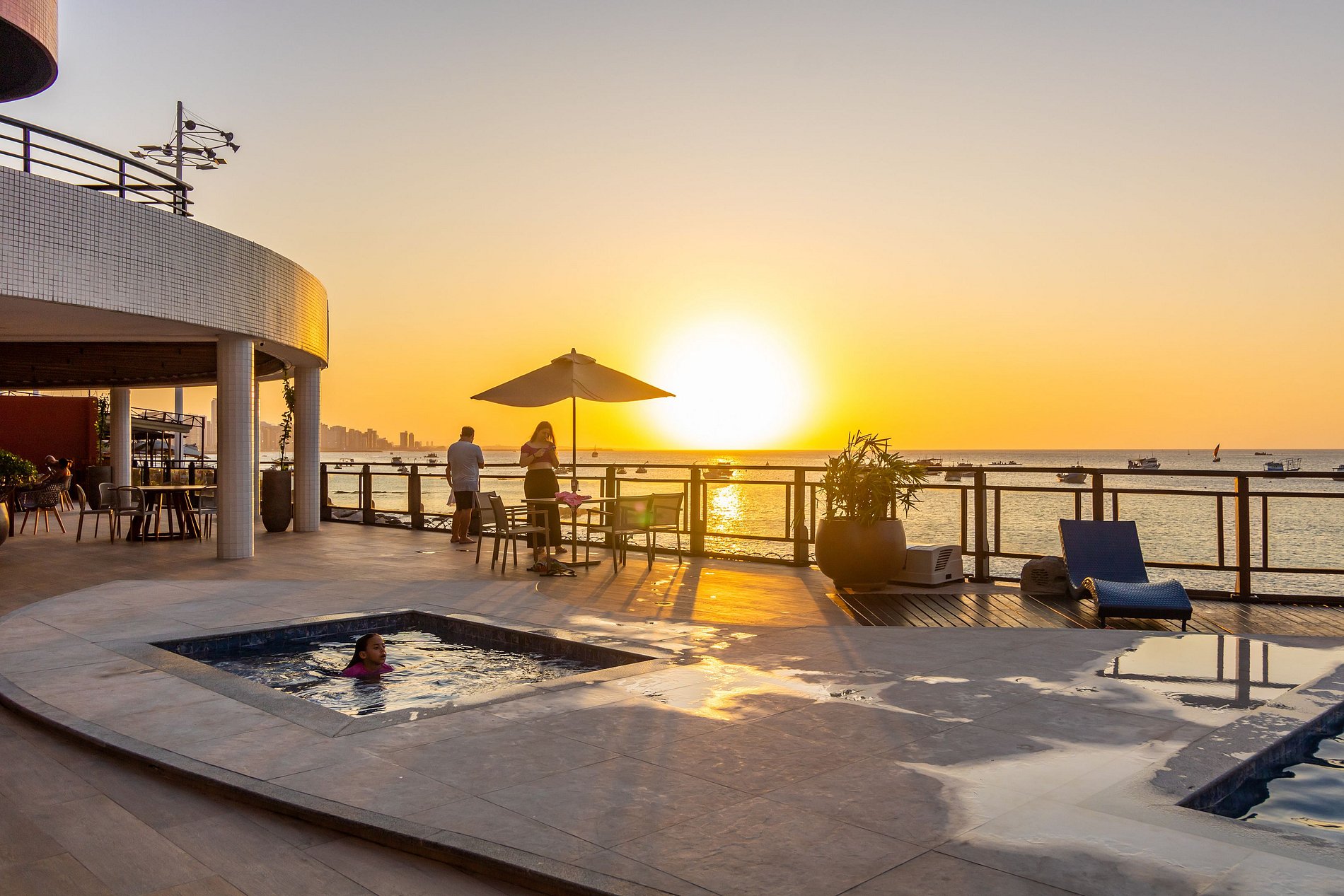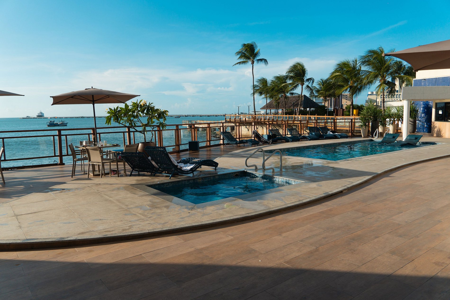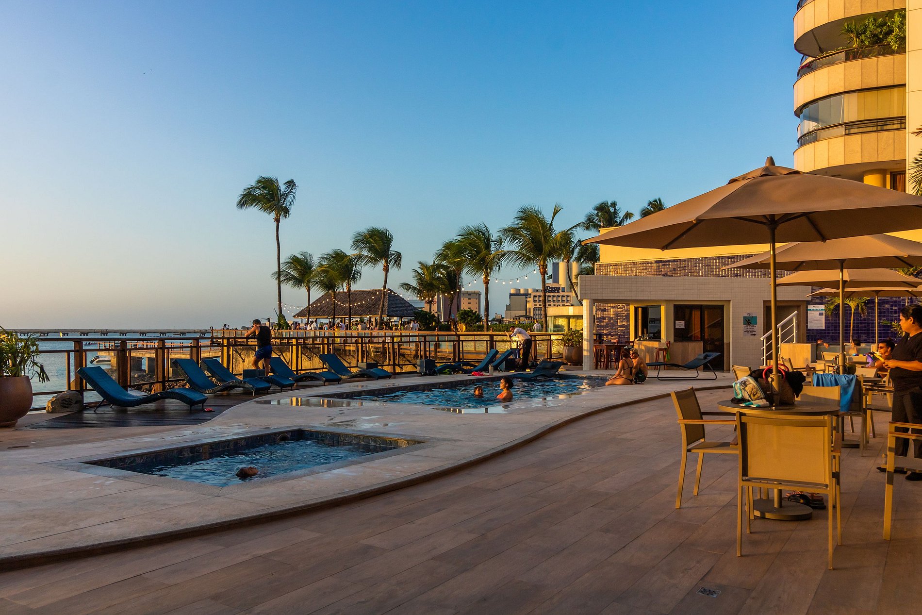 - Lazer: Você não precisa sair do Iate Plaza Hotel para poder aproveitar o sol e a brisa da praia. Você pode desfrutar de uma piscina ao ar livre no hotel, enquanto admira a vista do mar e relaxa com uma bebida servida no bar à beira da piscina.