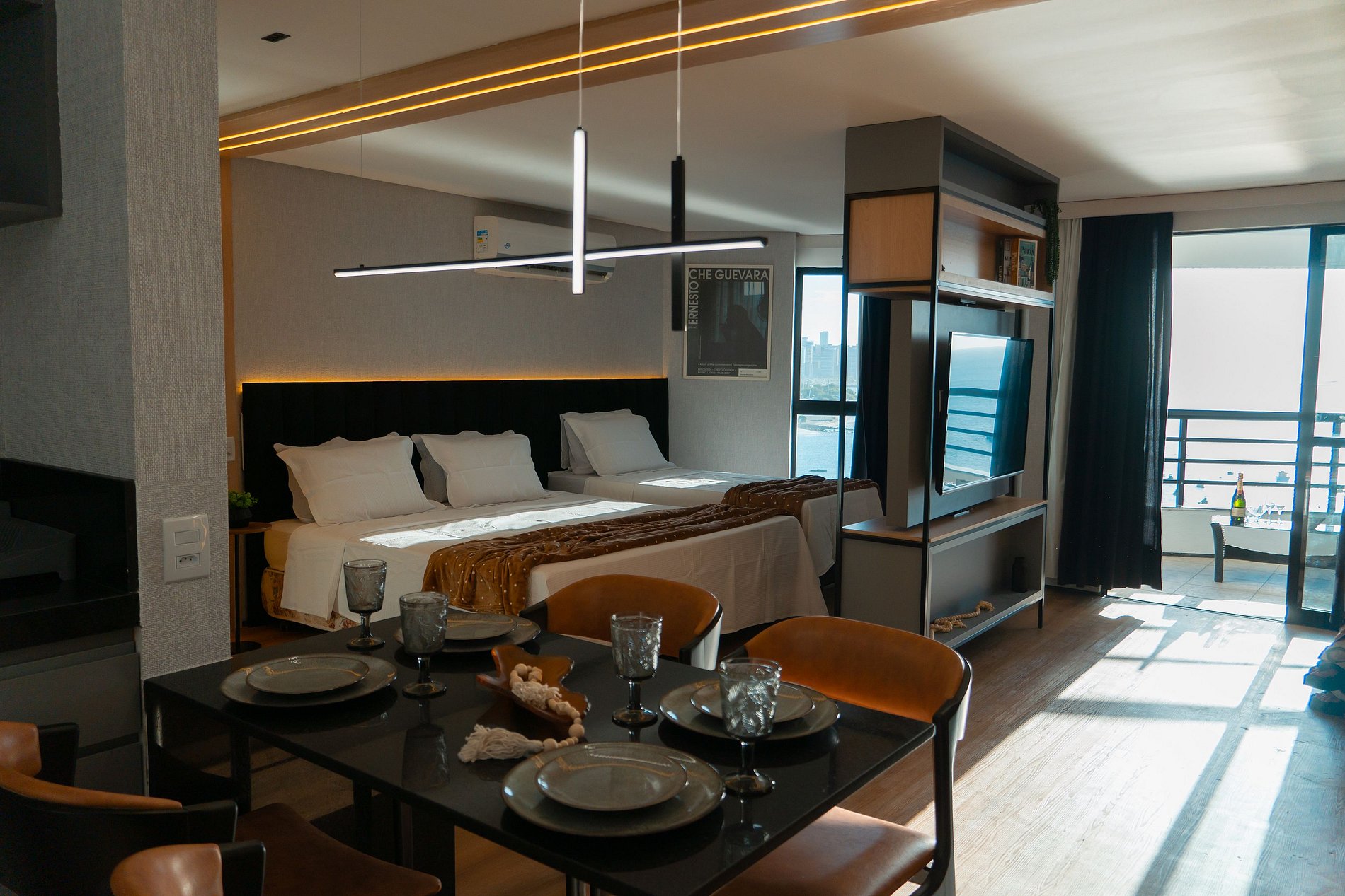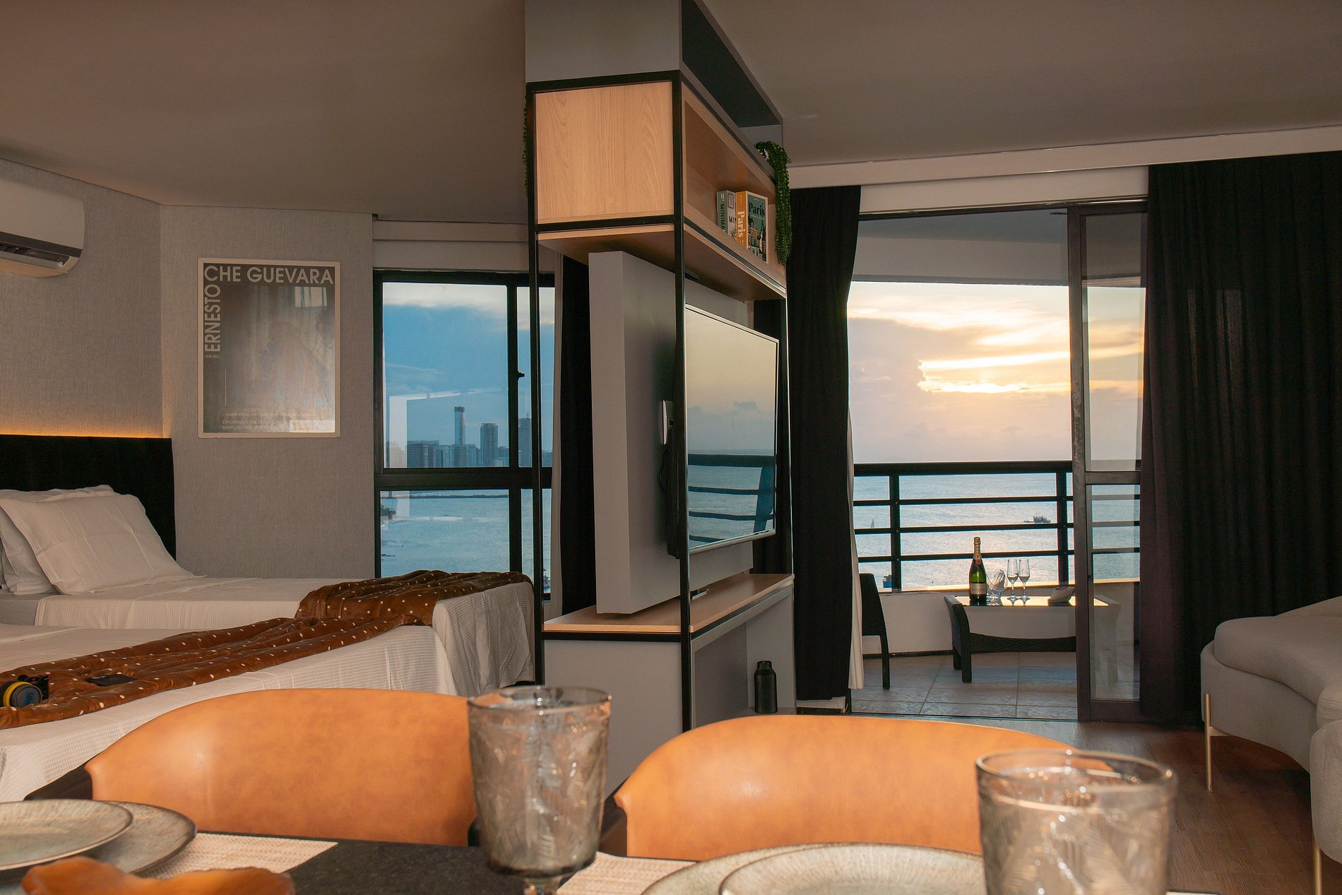 O Flat 1106 é especial pela sua localização privilegiada na Beira Mar de Fortaleza, de frente para o mar e ao lado do tradicional Mercado dos Peixes — um dos lugares mais visitados e queridos da cidade. Da varanda, você pode relaxar apreciando a brisa e o pôr do sol cearense, em um cenário que é cartão-postal.
