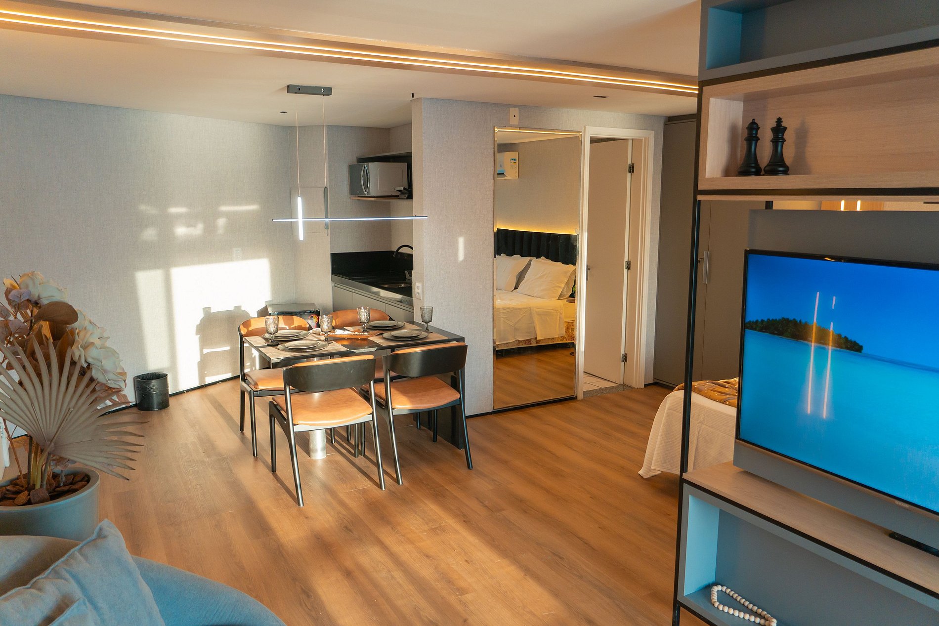 Além disso, o flat está dentro da estrutura de um hotel, oferecendo comodidades como recepção 24h, piscina com vista para o mar, academia e serviço de limpeza diária. Tudo isso cria uma experiência acolhedora, segura e prática, seja para uma viagem a lazer ou a trabalho.